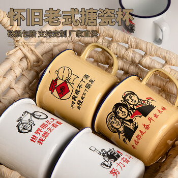茶缸老式搪瓷杯怀旧经典复古马克杯搪瓷茶缸子老式大号个性定制 6cm黄色100毫升无盖