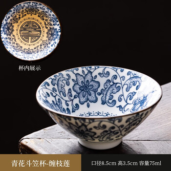 斗笠茶碗杯号茶杯杯子品茗陶瓷功夫茶盏主人大釉下彩杯双喜斗笠杯 75ml