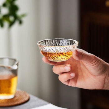 冰川纹玻璃杯新中式冷萃茶杯高颜值威士忌酒杯磨砂水杯冷泡茶杯子冰纹矮杯 220ml