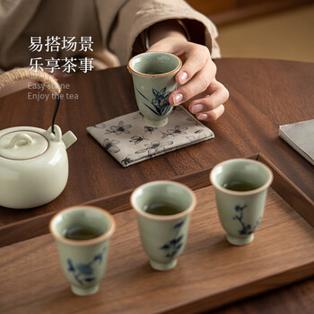 哥窑美人杯品茗杯茶杯水杯小杯子开片可养礼盒礼品冰裂梅兰竹菊灰哥窑-青竹美人杯 60ml 1只